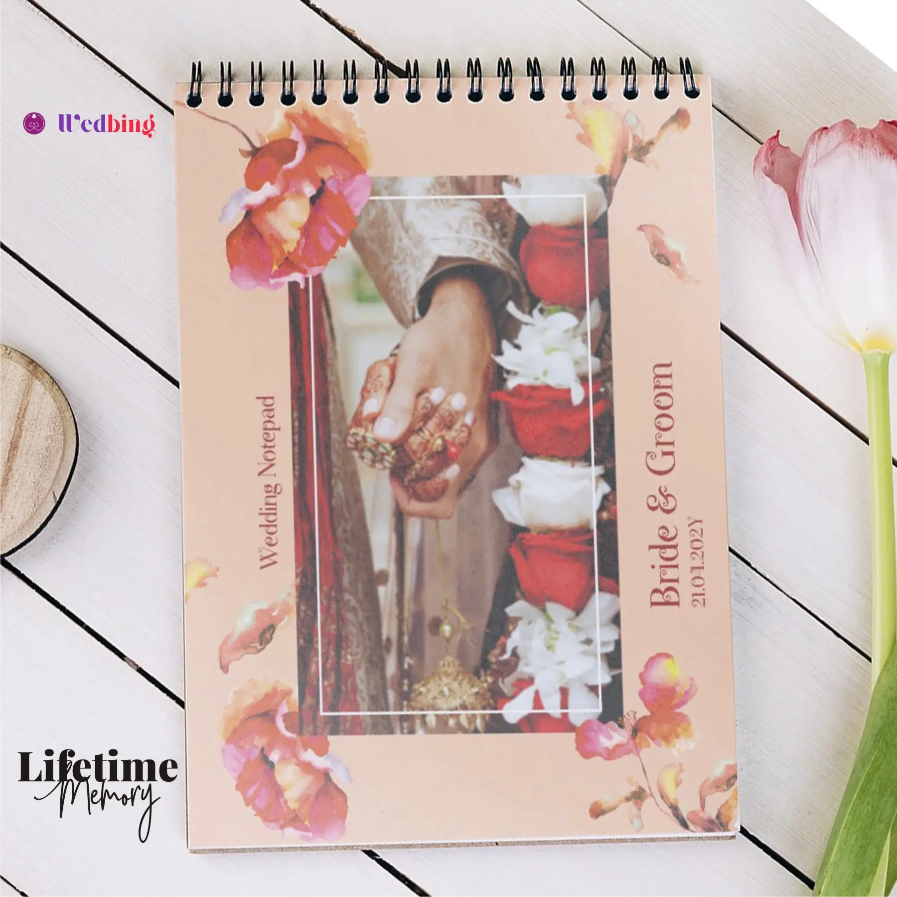 • Customised Cover – Add your Photo, Names & Wedding Date