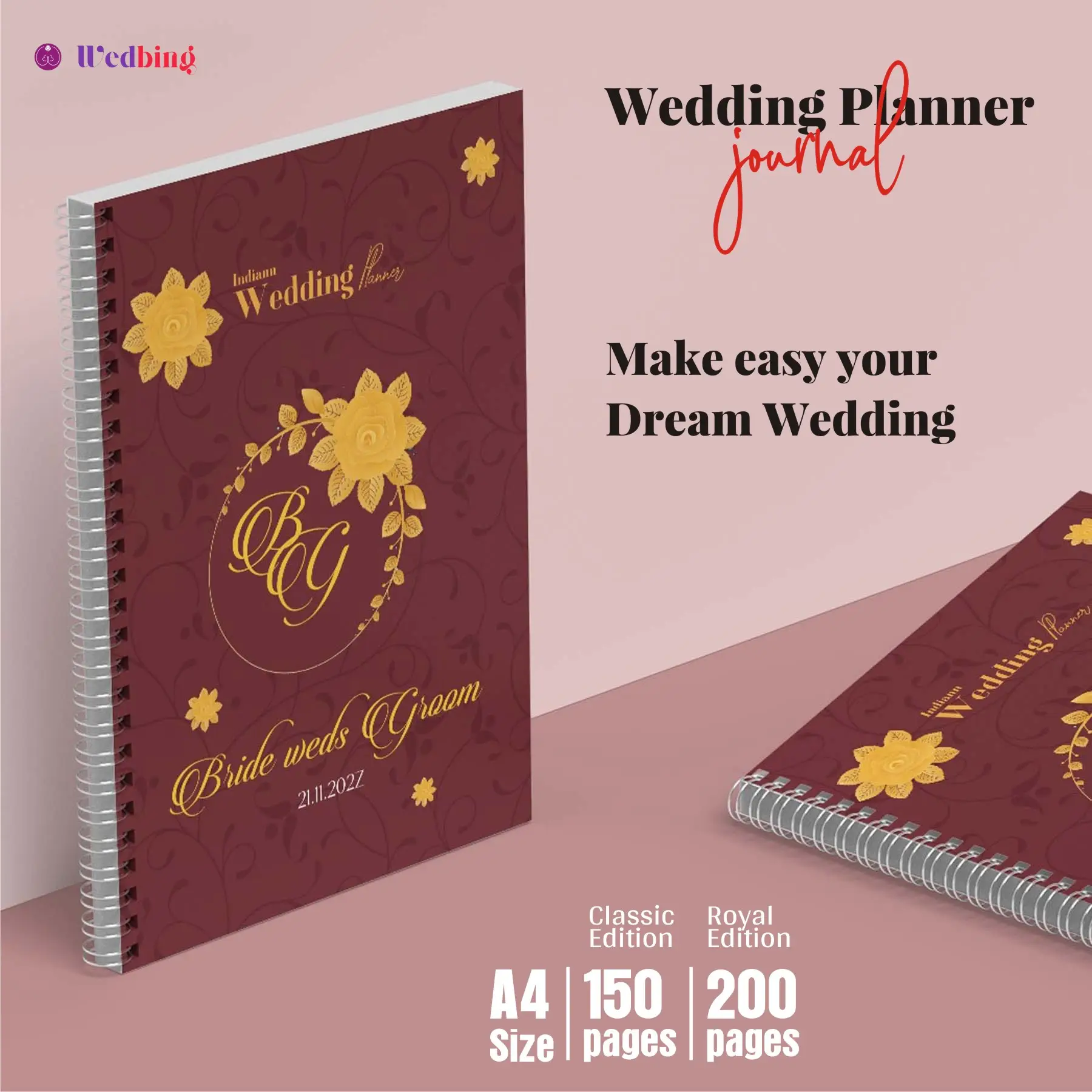 The Wedbing Wedding Management Planner Book is your complete wedding planning companion, designed especially for Indian weddings. Whether you’re planning a grand celebration or an intimate ceremony, this planner helps you organize everything seamlessly—from the first function to the final farewell.