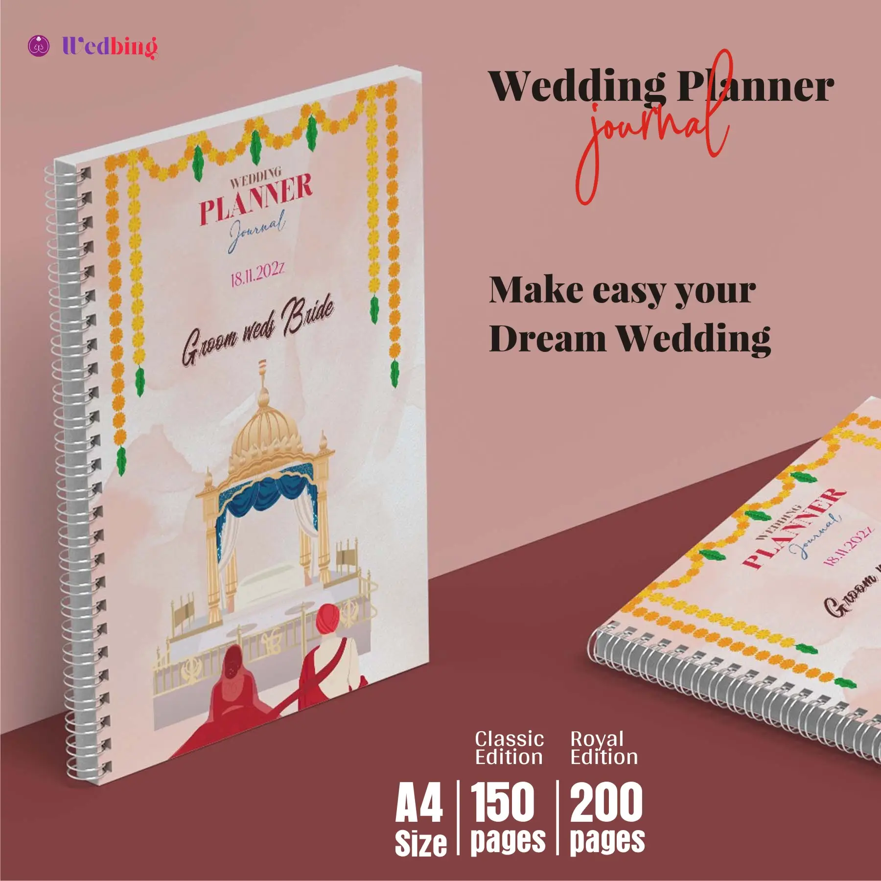 The Wedbing Wedding Management Planner Book is your complete wedding planning companion, designed especially for Indian weddings. Whether you’re planning a grand celebration or an intimate ceremony, this planner helps you organize everything seamlessly—from the first function to the final farewell.
