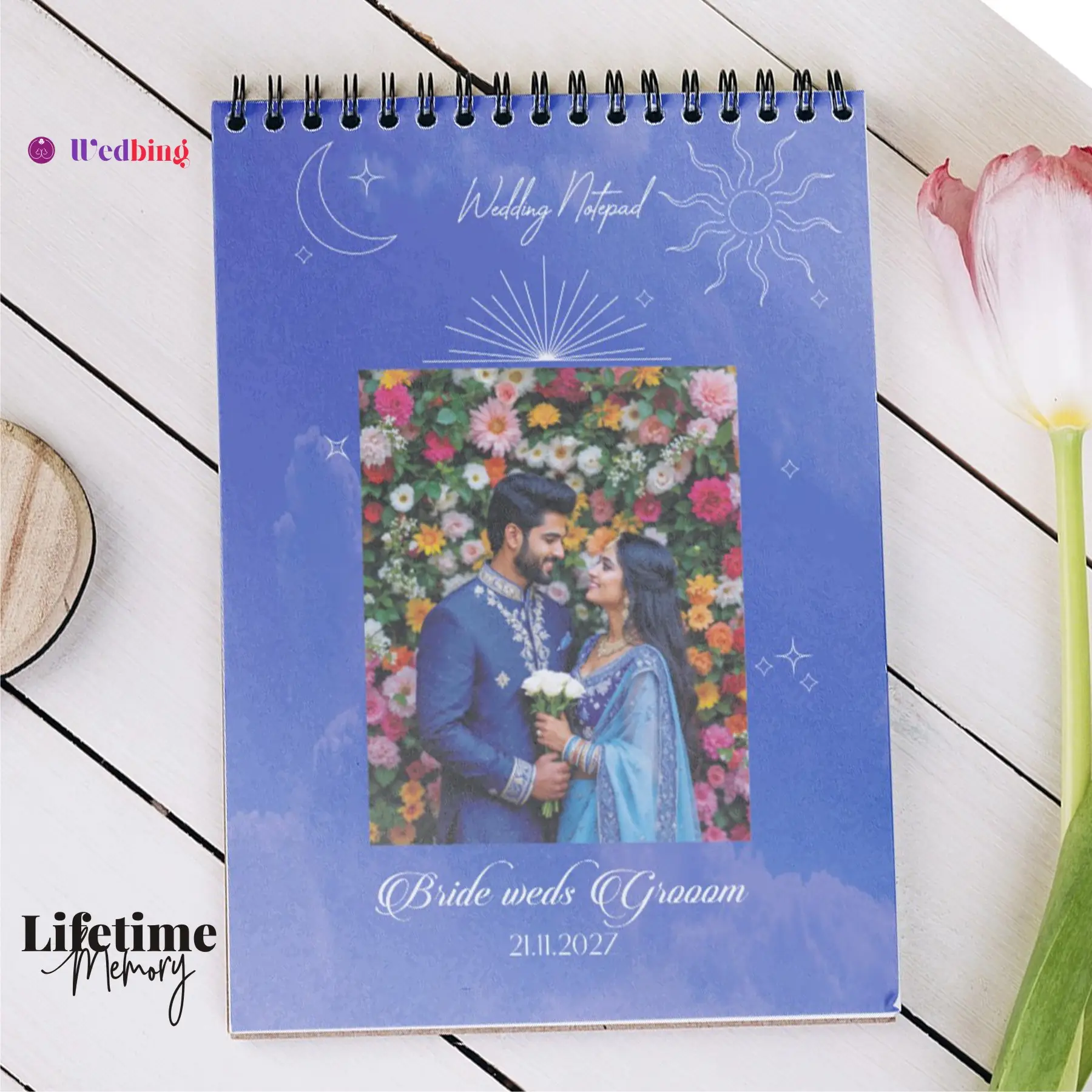 • Customised Cover – Add your Photo, Names & Wedding Date